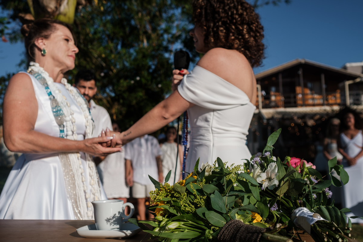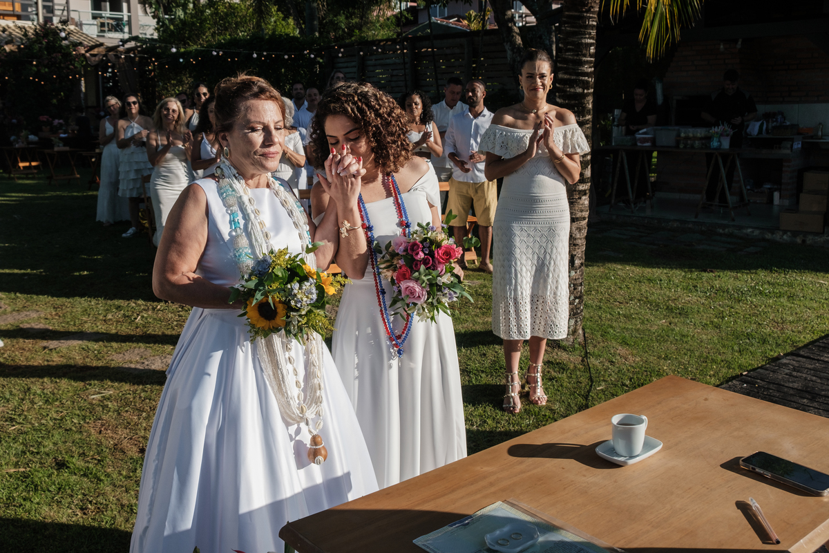 Recebemos um convite muito especial de uma filha que queria presentear duas noivas, sua mãe e esposa. Pensem na felicidade quando soubemos que iriamos ajudar a construir essas recordações...